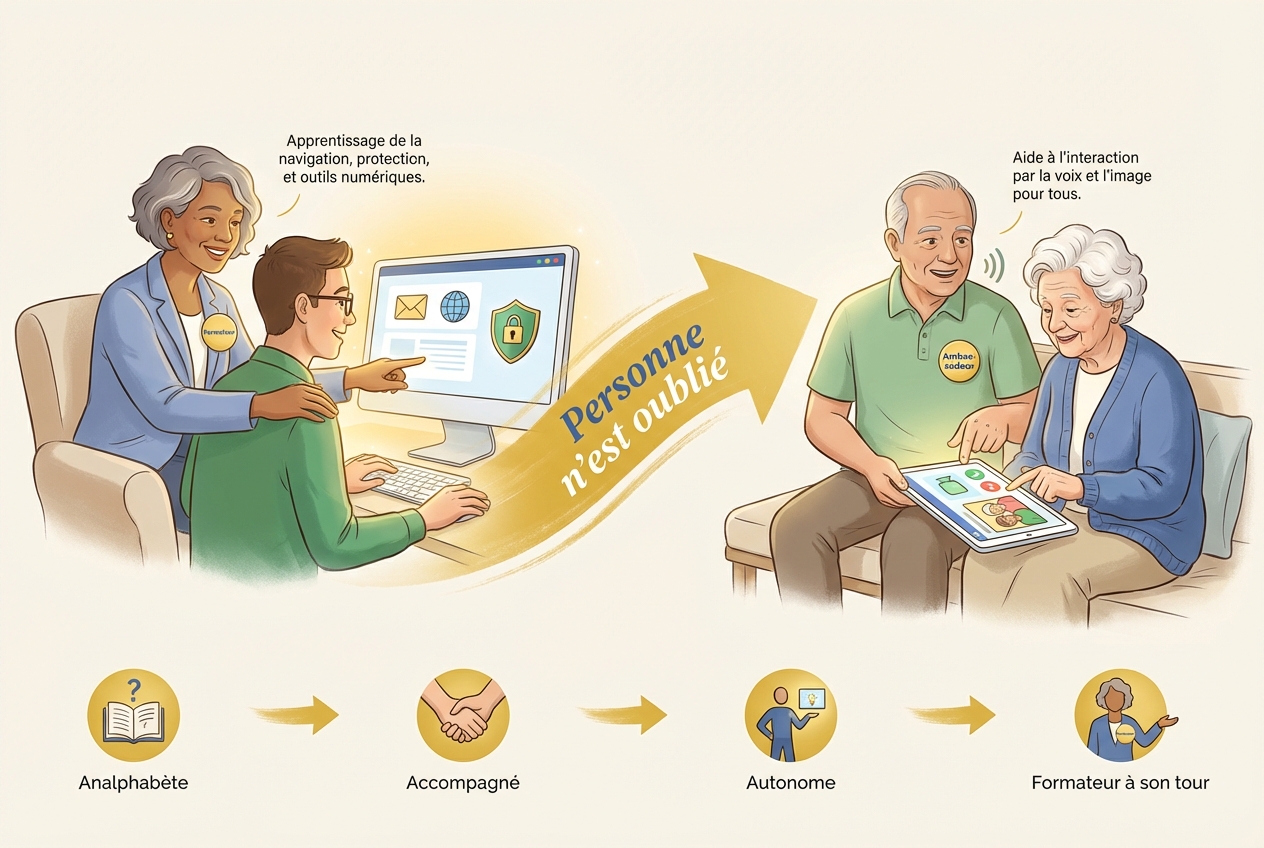 Progressivement, ces citoyens retrouvent leur autonomie numérique. Ils obtiennent un ordinateur. Ils acquièrent la littératie nécessaire. Ils gèrent eux-mêmes leur vie numérique. Le chemin est plus long, mais il n'exclut personne.