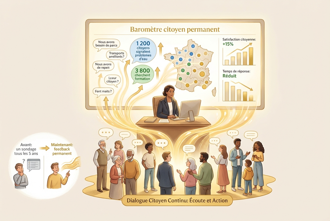 Un maire ouvre son tableau de bord le matin. Il constate que mille deux cents citoyens de sa commune ont signalé un problème d'eau potable dans le quartier est. Ce n'est pas un sondage, ce n'est pas un rapport datant de deux ans — c'est ce que la population exprime en ce moment même. Le problème est visible. Il ne peut pas l'ignorer.
